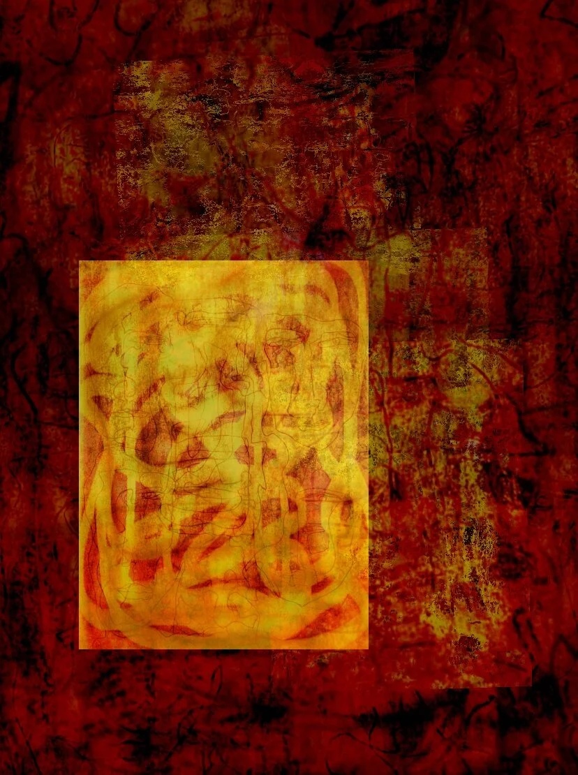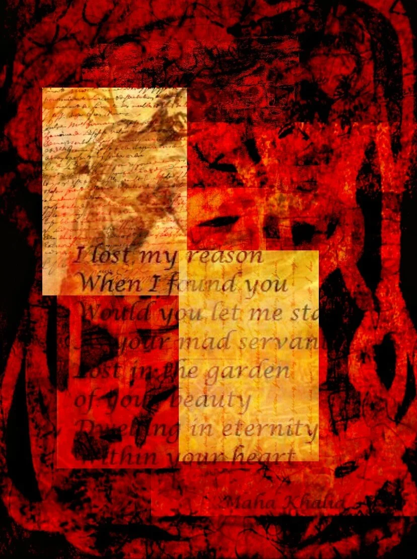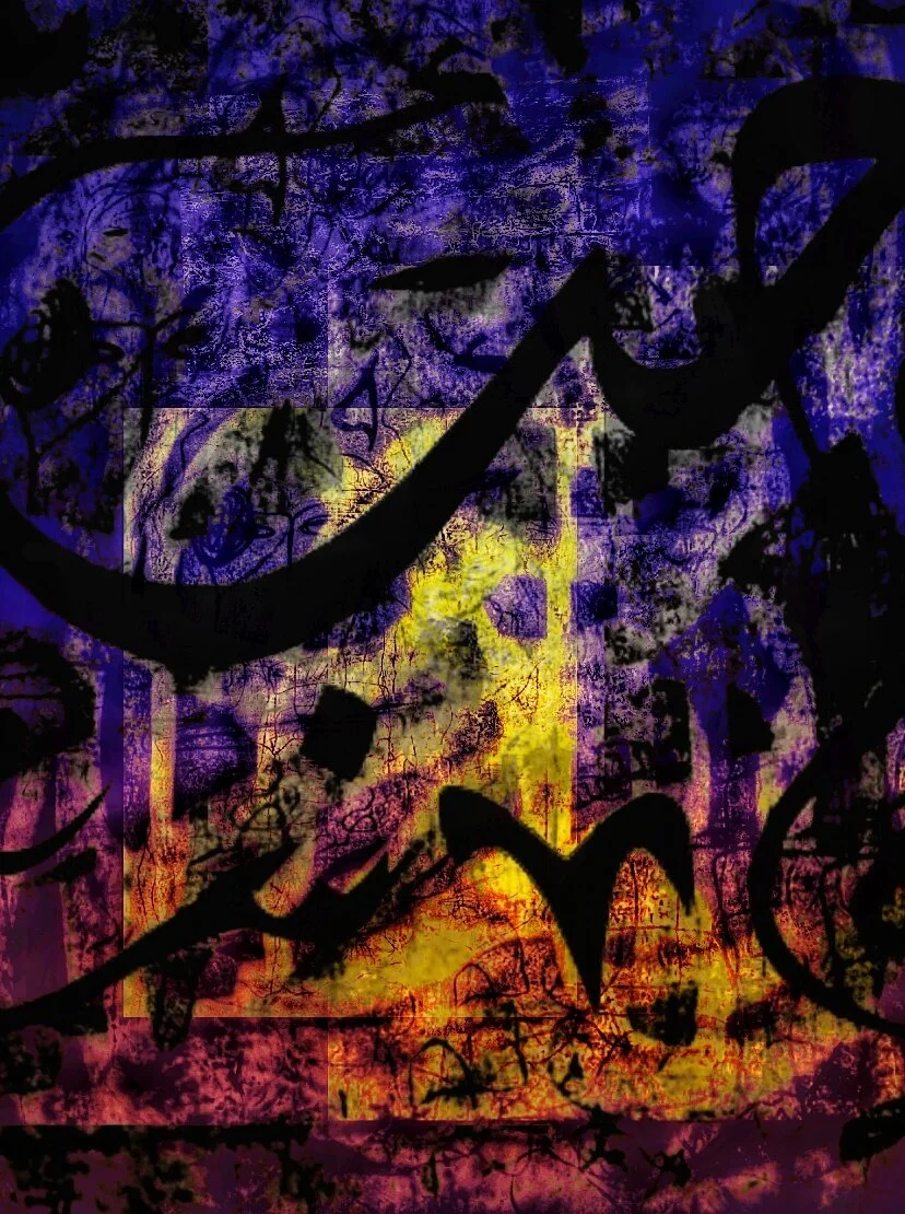 This new series of digital collages were created using multilayering techniques, by creating several versions of abstract work and then layer these versions in different ways. Calligraphy is used in various ways, poetry is also employed, love letters, and even old used envelopes. Markings are introduced through scanned physical drawings by the artist. Photography was used in some layers in few pieces as well. The resulting work is energetic, full of references, and vibrant with meaning. The various elements bring intimacy, time, and personal details to the work. Please click on each section to open the page that takes you to the particular series collection of artwork.